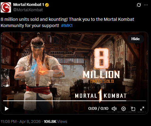Pomimo zakończenia aktualizacji zawartości prawie rok temu, Mortal Kombat 1 wciąż sprzedaje się przyzwoicie. Jak podali twórcy za pośrednictwem platformy X, bijatyka do tej pory sprzedała się w liczbie 8 milionów egzemplarzy. Taki wynik stanowi znaczny wzrost w porównaniu z 6,2 miliona sprzedanych kopii w sierpniu 2025 roku.