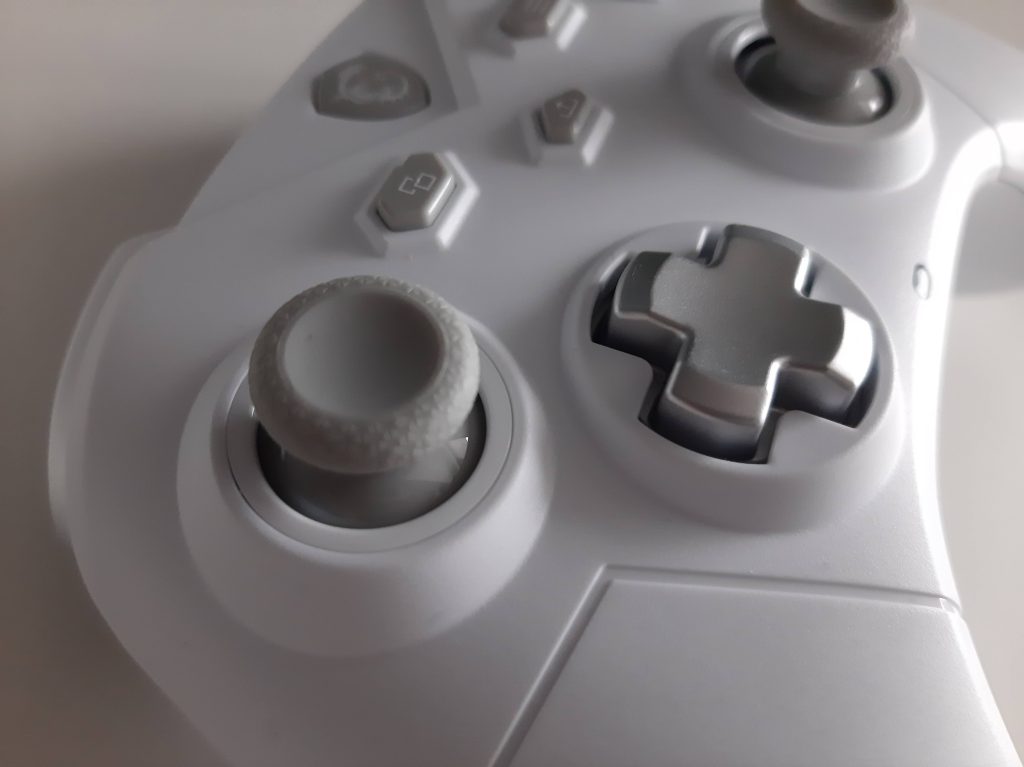 Po kilku dniach grania mogę powiedzieć, że pierwsze wrażenie jest bardzo pozytywne. Kontroler jest wygodny i dobrze leży w dłoniach. Konstrukcja przypomina układ znany z padów Xbox, więc osoby przyzwyczajone do tego typu kontrolerów poczują się tu od razu komfortowo. Co istotne, zainstalowane joysticki są tutaj delikatnie wyższe, niż np. w padzie do PS. To, przynajmniej w moim odczuciu pozytywnie przekłada się na wrażenia z rozgrywki. Zwiększało to moje poczucie większej kontroli nad ruchami.